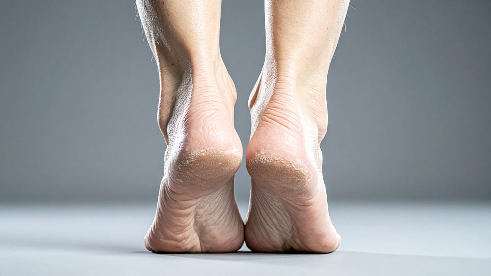 Commonly caused by going barefoot or wearing open-backed shoes, not wearing proper socks, obesity, dry climate, heredity, inactive sweat, and oil glands which are commonly associated with diabetes.